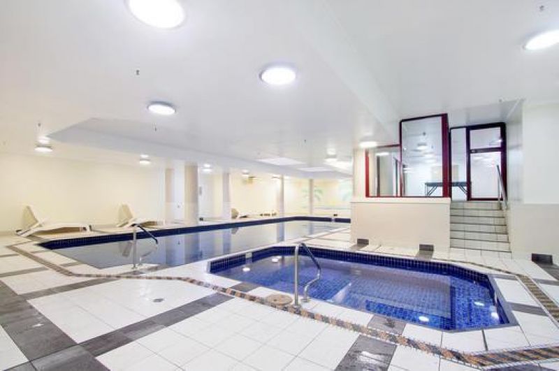 - Resort-style amenities, including indoor heated pool, spa, sauna, gym, and conference room.