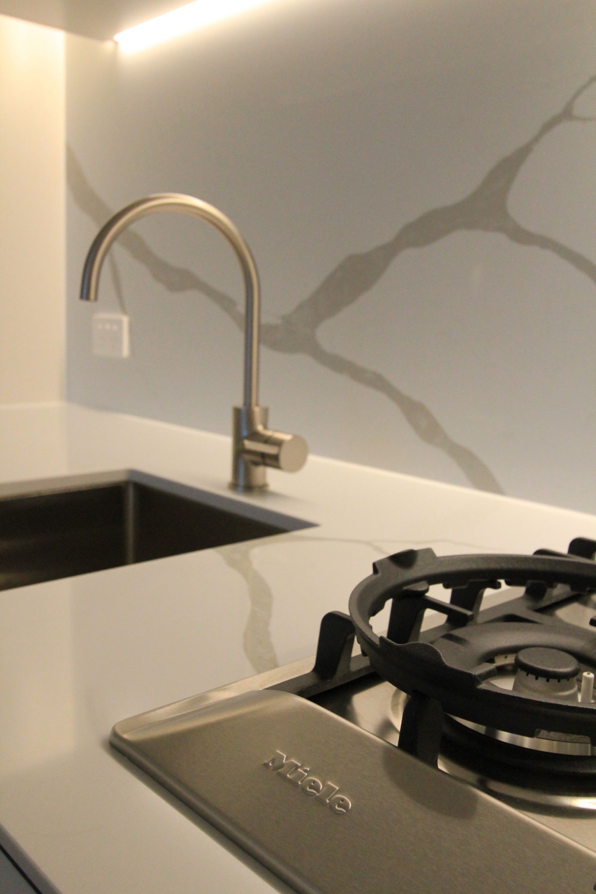 - Stylish stone kitchen comes complete with Miele gas stove, oven and integrated dishwasher