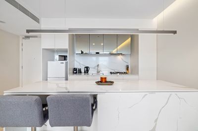 - Open plan interior flows gracefully to entertainers' terrace, where residents can enjoy the Saturday night fireworks across Darling Harbour.